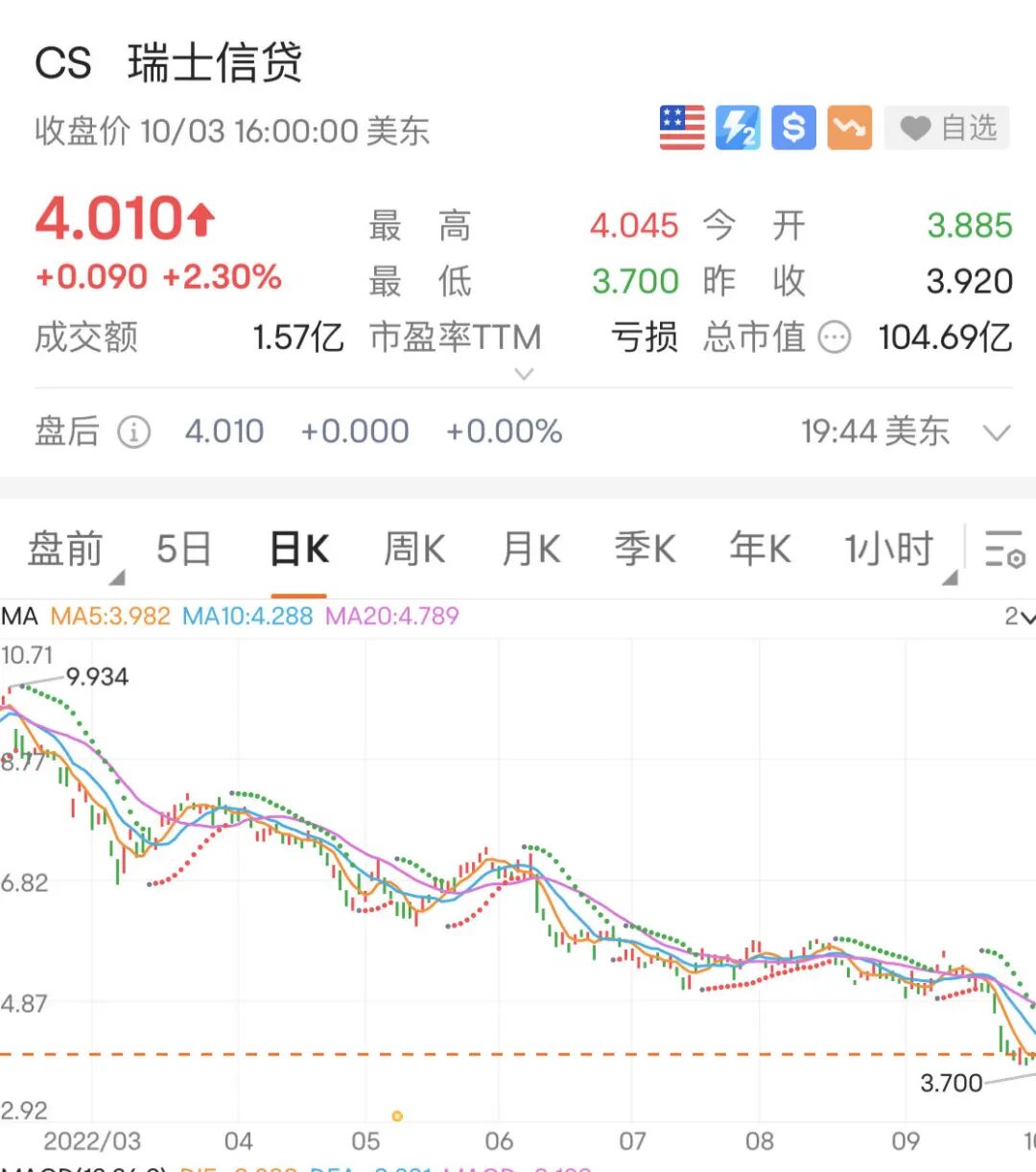 阴霾密布下,瑞信美股盘前跌7%,开盘后一度跌5.6%,但午盘转涨并收涨2.3%,其欧股一度跌超11%至历史最低,最终收跌近1%,瑞信集团的信用风险评估指标也也一度升至纪录高位。