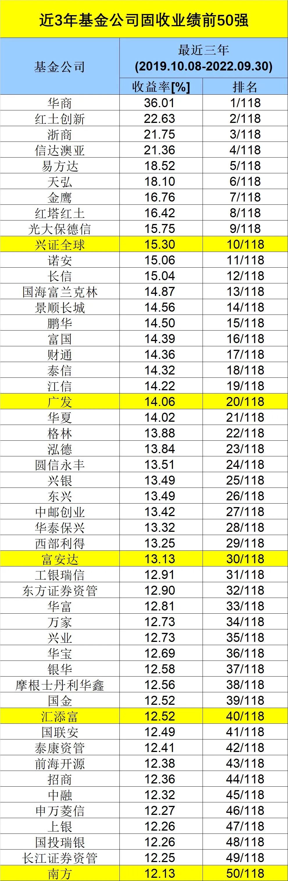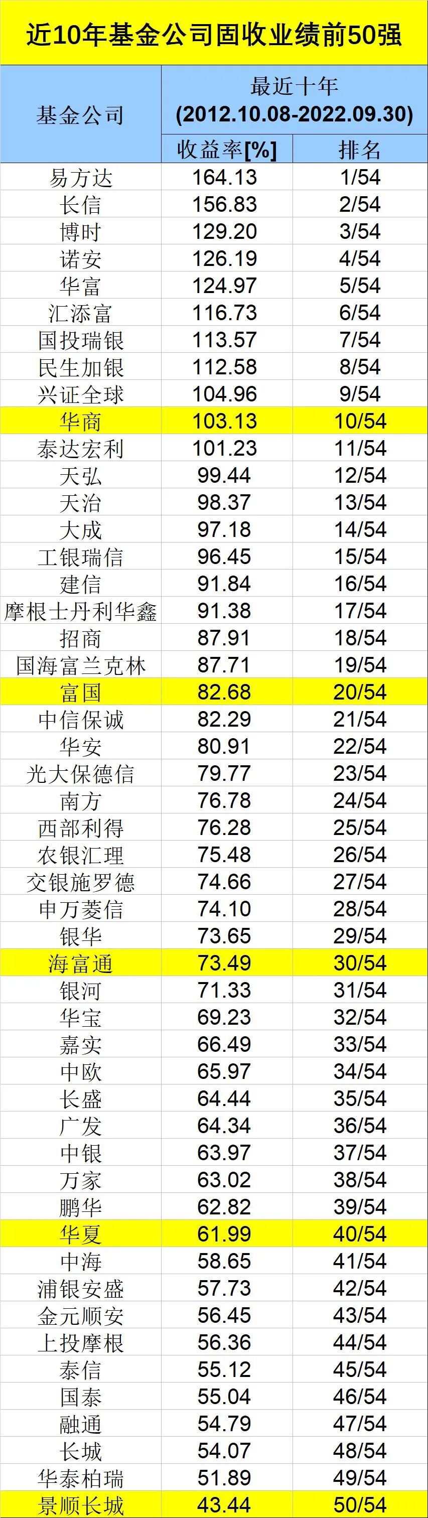 海通证券近期公布基金公司固定收益类基金绝对收益排行榜,揭开了过去十年、过去五年、过去三年、今年前三季度业绩较好的基金公司,供业内外参考。