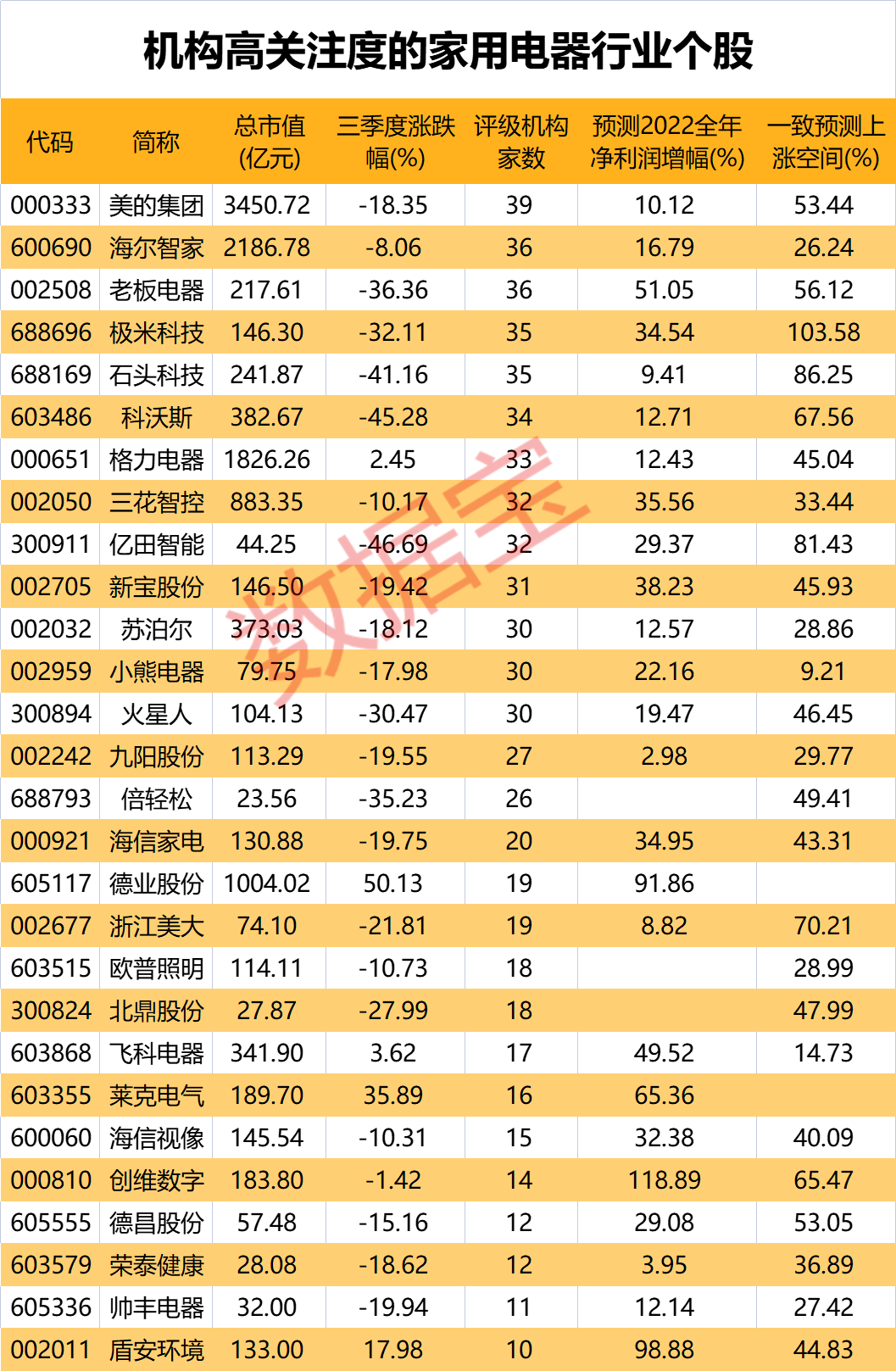 业绩方面,机构预计创维数字全年净利润有望翻倍,盾安环境、德业股份或将实现同比90%以上高增长。此外,上半年业绩小幅下滑的老板电器也为机构看好,预计全年净利润同比增长51.05%。
