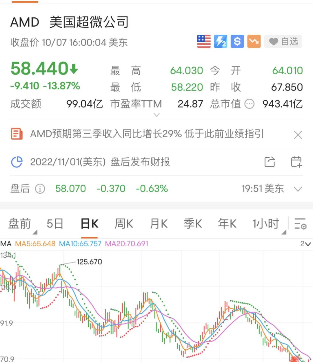 瑞穗银行将AMD目标价从125美元下调至102美元。他们认为,AMD预先公布了其9月份的业绩,收入和毛利润率分别为56亿美元和50%,远远低于之前的指引。随着PC/服务器市场走软,AMD甚至比人们担心的还要疲软。