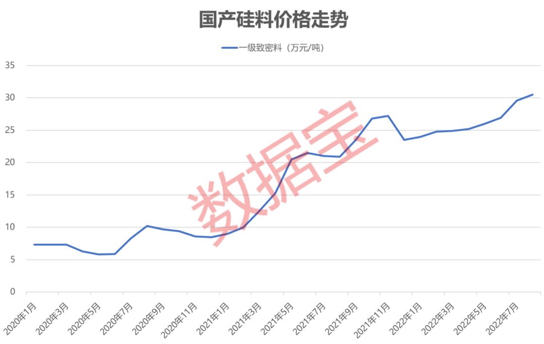 光伏产业链自2021年起价格持续上涨,上游多晶硅最新报价29.73万元/吨,已连续9个月价格上涨,相比2020年低点不足6万元/吨翻了数倍。