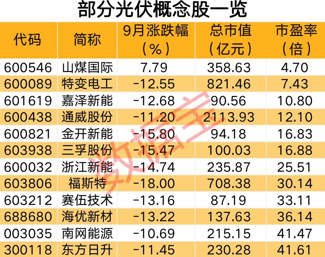 估值上来看,山煤国际和特变电工等光伏概念股最新市盈率均低于10倍。
