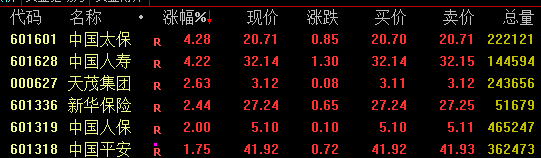 保险、券商、银行板块盘中集体走高,截至收盘,保险板块方面,中国太保、中国人寿涨超4%,新华保险涨2.4%,中国平安涨近2%;券商板块方面,中信建投、广发证券涨超4%,东方财富涨逾3%;银行板块方面,江阴银行、无锡银行涨超3%。