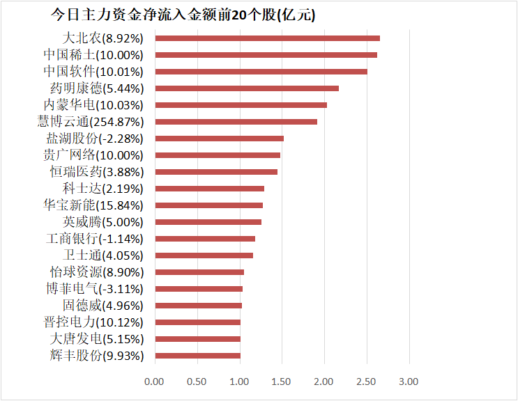 今日沪深两市主力资金开盘净流出35.49亿元,尾盘净流出17.01亿元,两市全天资金净流出97.46亿元。