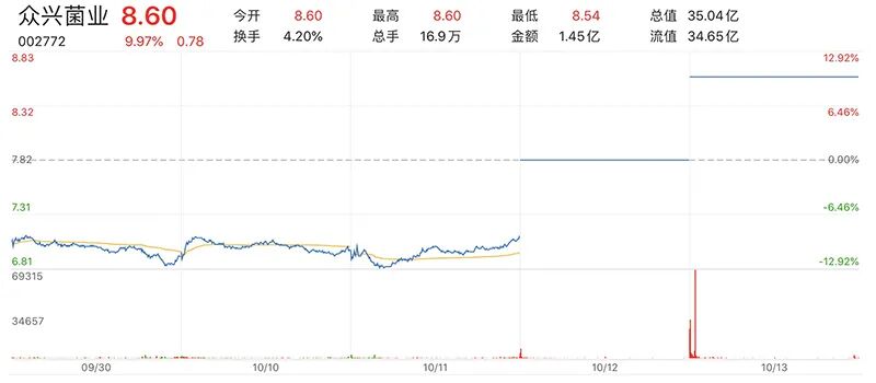 从市场表现来看,三季度业绩强劲的公司更容易获得投资者追捧。众兴菌业10月11日晚间发布深市首份三季报,净利润同比增长324.92%,扣非净利润同比增长481.99%。受亮眼业绩影响,众兴菌业10月12日、13日,连封涨停板。