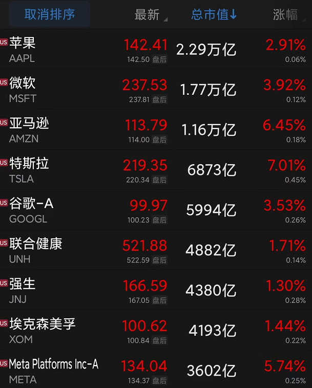 盘面上看,大型科技股周一普涨,特斯拉涨7%,亚马逊涨6.45%,英伟达、脸书母公司Meta涨超5%,微软、谷歌涨超3%,苹果涨2.91%。本周,美股财报季持续,特斯拉、奈飞、国际商用机器公司(IBM)也将公布财报。