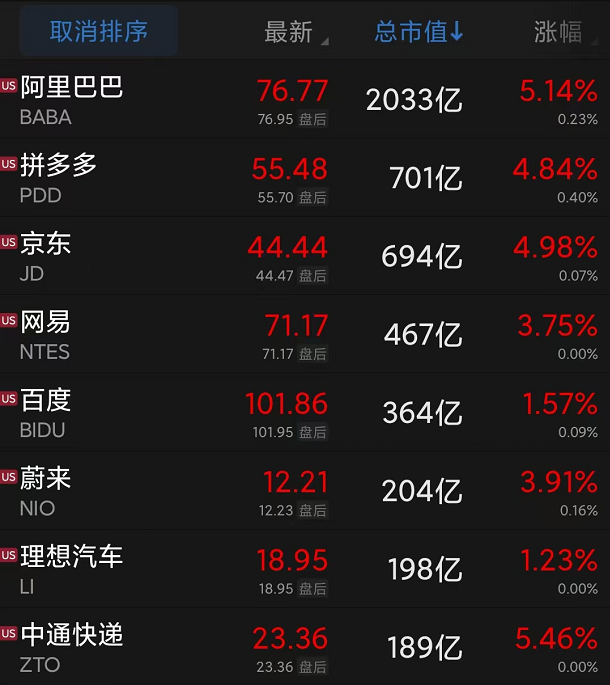 热门中概股涨幅居前,纳斯达克中国金龙指数涨3.32%。阿里巴巴、中通快递涨超5%,拼多多、京东涨近5%,网易、蔚来涨超3%。