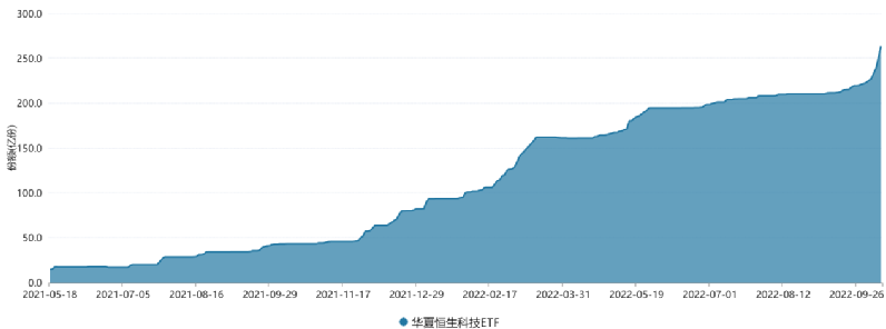 值得一提的是,虽然跟踪恒生指数和恒生科技指数的多只ETF年内净值增长率持续走低,基金份额却不断攀升,整体呈现“越跌越买”的趋势,尤其是国庆节之后,这一势头更为明显。