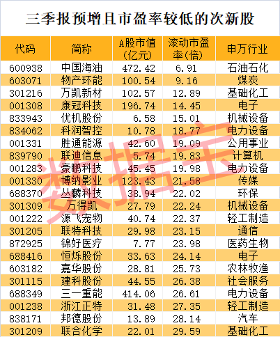 目前A股三季报业绩预告披露密集,不少股票在披露业绩后股价走强,次新股中同样不乏高增长股。