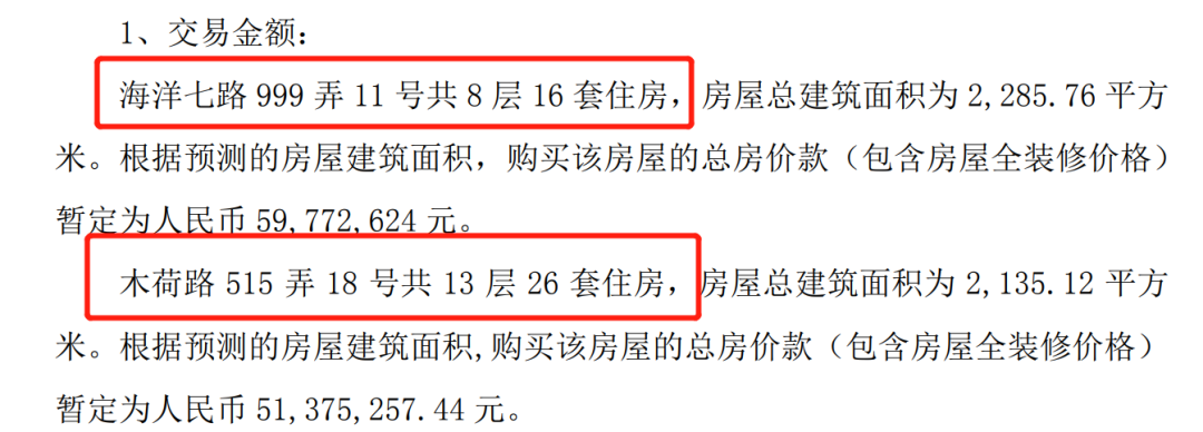 公告显示,标的资产包括上海市浦东新区海洋七路999弄11号共8层16套,木荷路515弄18号共13层26套。