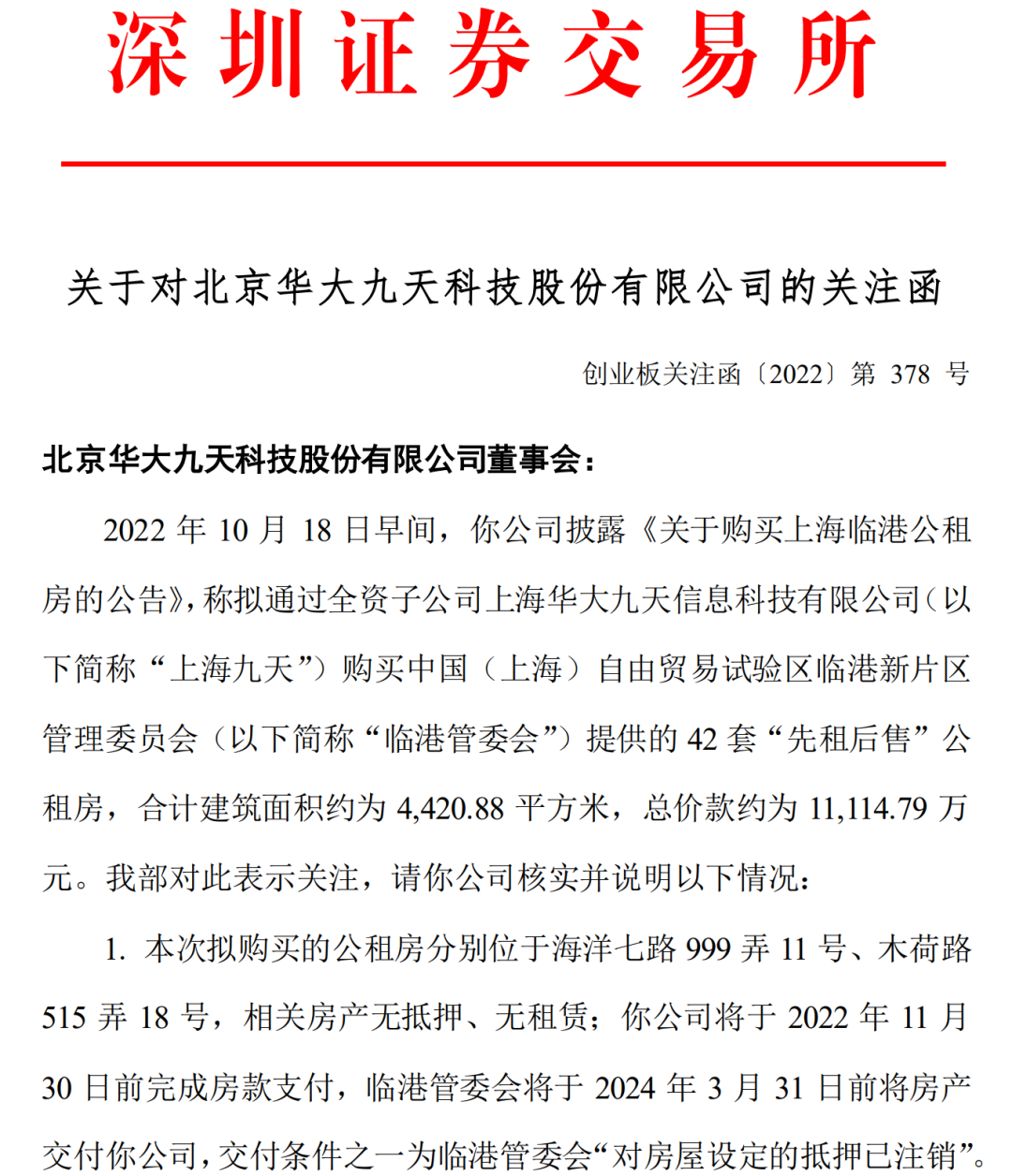 关注函提出,华大九天需说明购买公租房并对员工出租、出售是否有利于吸引和激励核心人员、是否存在可能损害上市公司利益的情形。