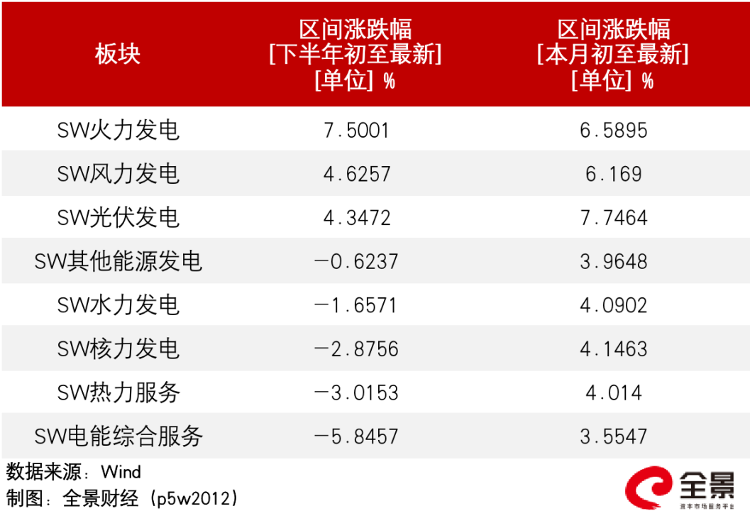 Wind数据显示,下半年以来,火电板块涨幅为7.50%,涨幅在电力板块中位列首位;十月份节后以来,火电涨幅也位居板块前列,为6.59%,仅次于光伏发电。