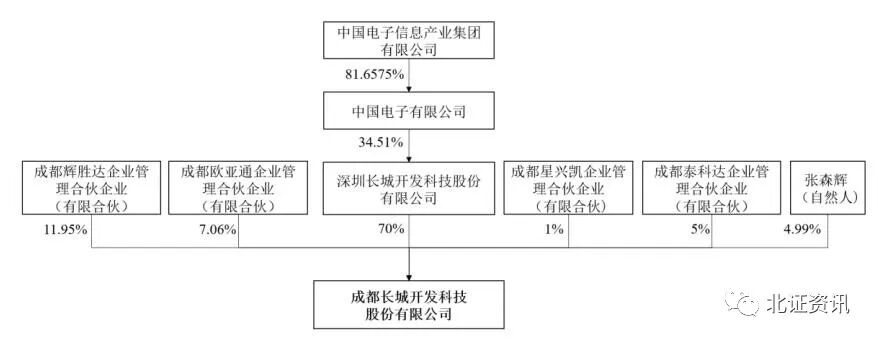 公转书显示,成都长城开发的控股股东为深交所上市公司深科技(000021),后者持有前者7000万股股份,占公司总股本的70%。公司的实际控制人为中国电子信息产业集团有限公司。