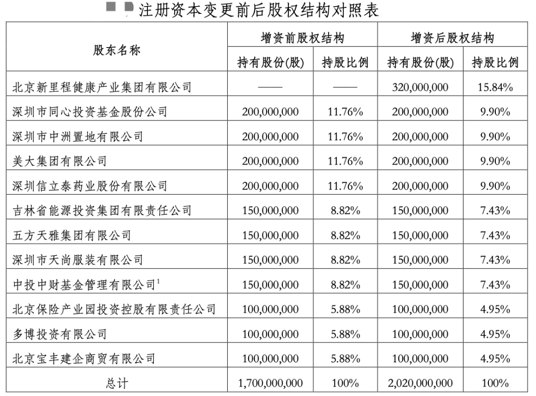 此次增资受到一定关注。根据公告,爱心人寿拟增资3.2亿元,新增资本将由新增股东北京新里程健康产业集团有限公司(下称新里程健康)认缴出资。增资完成后,爱心人寿注册资本金增至20.2亿元,新股东新里程健康持股15.8416%,成为该公司第一大股东。