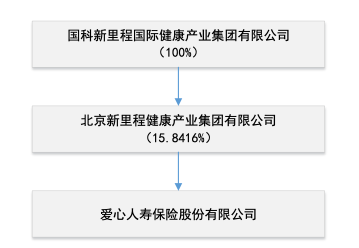 对于新里程健康的股权结构,爱心人寿的公告显示,新里程健康由国科新里程国际健康产业集团有限公司(下称国科新里程)100%持股。