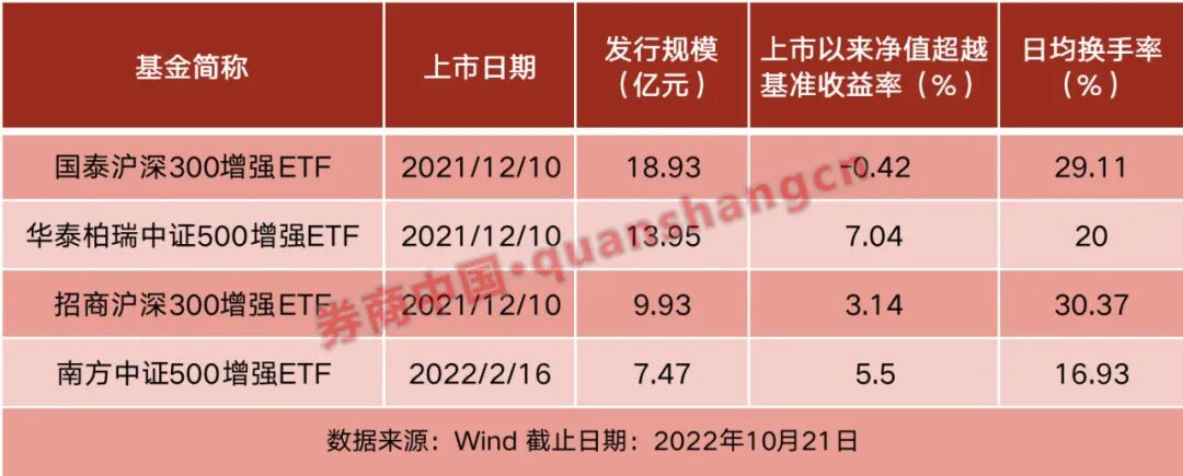 2021年12月以来,市场首批4只增强策略ETF陆续在上交所上市,合计发行规模达50.28亿元,目前已运作满8个月。