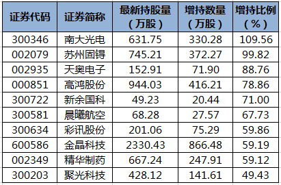 证券时报网讯,Wind统计显示,截至10月24日,共有604只个股获陆股通增仓。其中,持股量环比增幅在30%以上的共有28只,环比增幅最大的是南大光电,陆股通最新持有631.75万股,持股量环比增幅达109.56%;环比增幅较大的还有苏州固锝、天奥电子、高鸿股份、新余国科、晨曦航空等股。