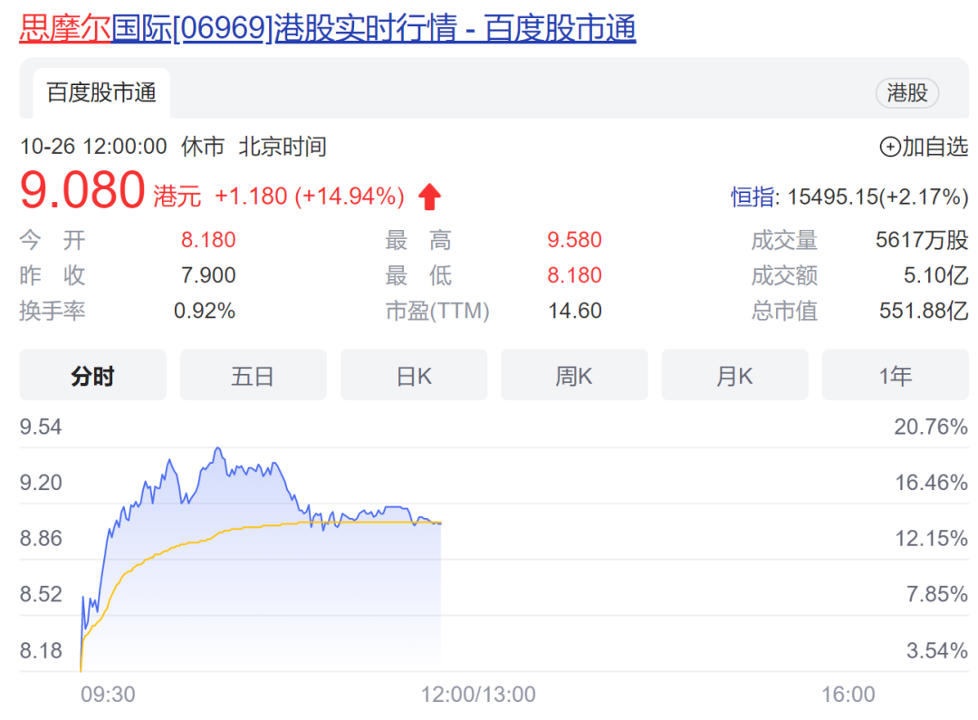 港股思摩尔国际一度飙升逾21%,中国波顿、中烟香港等纷纷跟涨。更多内容请看《》