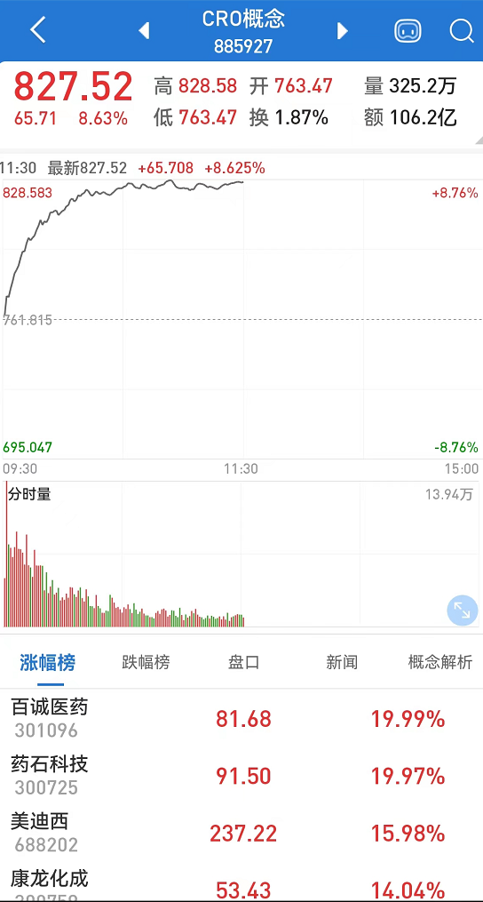 生物医药行业早盘再度全线大涨,医药板块指数一度放量飙涨逾6%,一举收复前两交易日下跌的失地,板块内个股再掀涨停潮,康希诺20%涨停,药石科技、通化金马等逾20股涨停或涨超10%;CXO概念、新冠检测、医疗保健、生物疫苗等细分板块均大幅拉升,三诺生物、方盛制药等强势涨停。