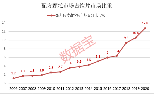 近年来,配方颗粒占中药饮片市场比重持续提升,2006年中药配方颗粒占饮片市场比重1.2%,随着中药配方颗粒研究的不断深入,实现每年30%以上增速,产业化趋势逐渐形成,2020年渗透率比重达到12.8%。