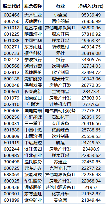 另外,北上资金本周还净买入中国神华4.95亿元,增持1677万股;净买入兖矿能源3.03亿元,增持693万股;净买入山西焦煤5412万元,增持443万股。上述个股总持仓均处于历史最高附近。