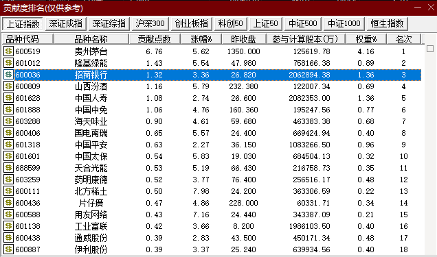 再接下就是A股市场的表演了。A股三大指数全线拉升,权重股表现尤其出色。贵州茅台大涨近6%,隆基绿能、招商银行、山西汾酒、中国中免等个股表现非常出色,对指数贡献巨大。