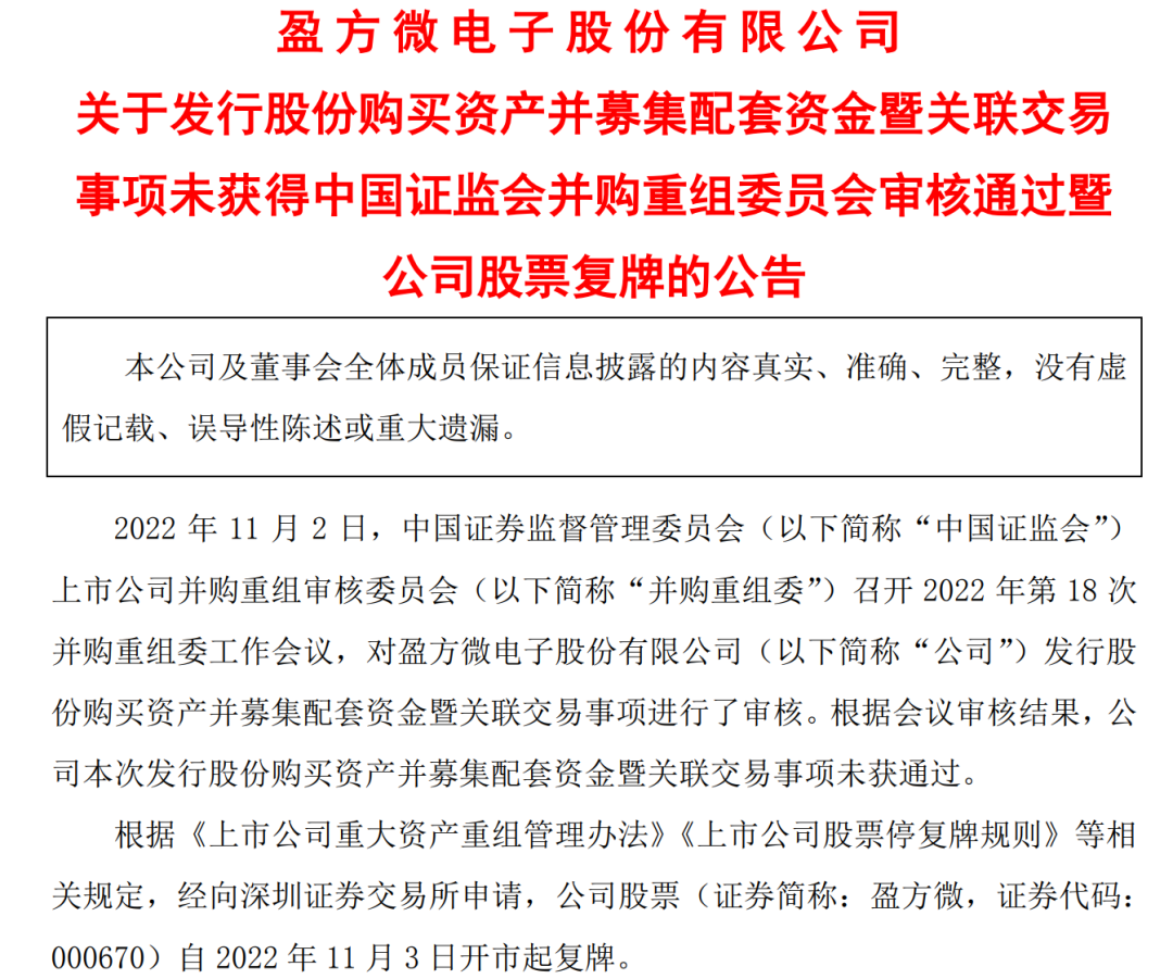 记者从证监会上市公司监管部方面获悉,盈方微本次重组遭否原因系“未充分说明本次交易不存在损害上市公司股东合法权益的情形,不符合《上市公司重大资产重组管理办法》第十一条的相关规定”。