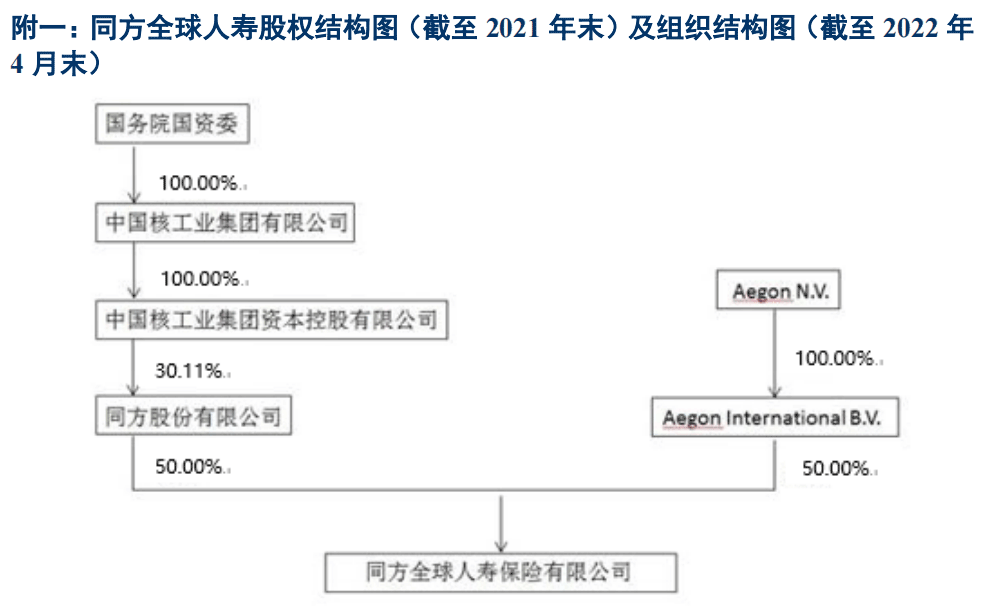 同方全球人寿由荷兰全球人寿保险集团(Aegon)与同方股份各出资50%组建而成,公司于2003年正式获得营业执照,在中国开展寿险业务。