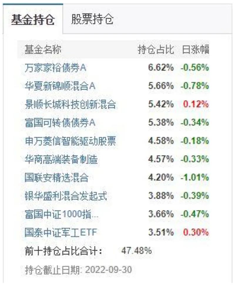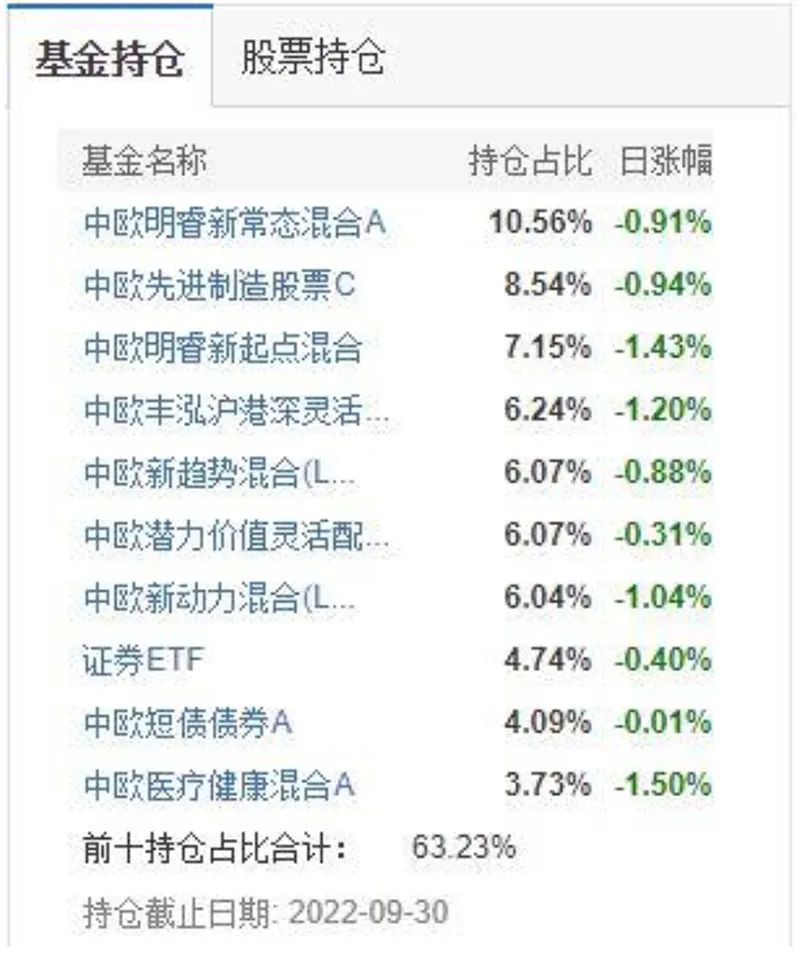 中欧预见养老2050五年持有FOF三季度十大重仓基金一览 数据来源:天天基金网