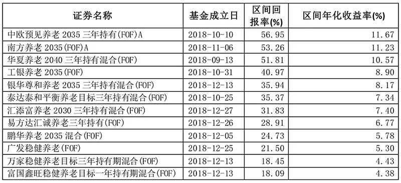 东财Choice统计数据显示,自2018年9月起首批养老FOF陆续成立以来,为持有人提供了长期稳健可持续的回报。仅以2018年内成立的养老FOF为例,根据不同的定位和风险收益特征,成立以来总回报在18.1%-56.95%之间,年化回报在4.38%-11.67%之间,其中中欧预见养老2035三年持有FOF、南方养老2040三年持有混合FOF和南方养老2035FOF成立以来总回报均超过50%,年化回报均在10%以上。