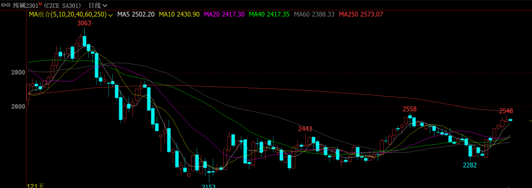 前期的超跌出乎市场预料,本月的反弹修复来得如“疾风骤雨”一般,这在纯碱品种上表现得淋漓尽致。期货日报记者观察到,进入11月以来,纯碱期货先抑后扬,呈现“V形”走势。本周,纯碱期货重心继续不断抬升,截至昨日日内收盘,纯碱期货2301合约报收2520元/吨,较本月初上涨9.23%。
