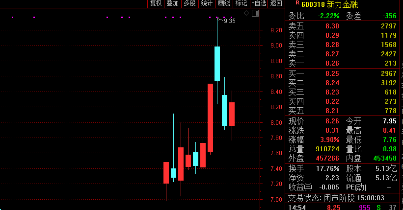 尽管股价在11月11日已一度超过9元/股,刷新近半年高点,但截至11月15日收盘,新力金融股价收报8.26元/股,距离海螺水泥设定的12元/股至13.4元/股的减持价格区间,仍有不小差距。