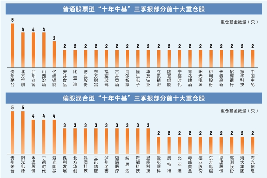 三季报前十大重仓股数据显示,基金集体看好各个行业龙头,24股获2只及以上基金共同持有。贵州茅台共获南方新兴消费A、上投摩根大盘蓝筹A、光大核心等5只基金重仓,数量居首;北方华创、泸州老窖和山西汾酒则分别进入4只基金重仓股名单。