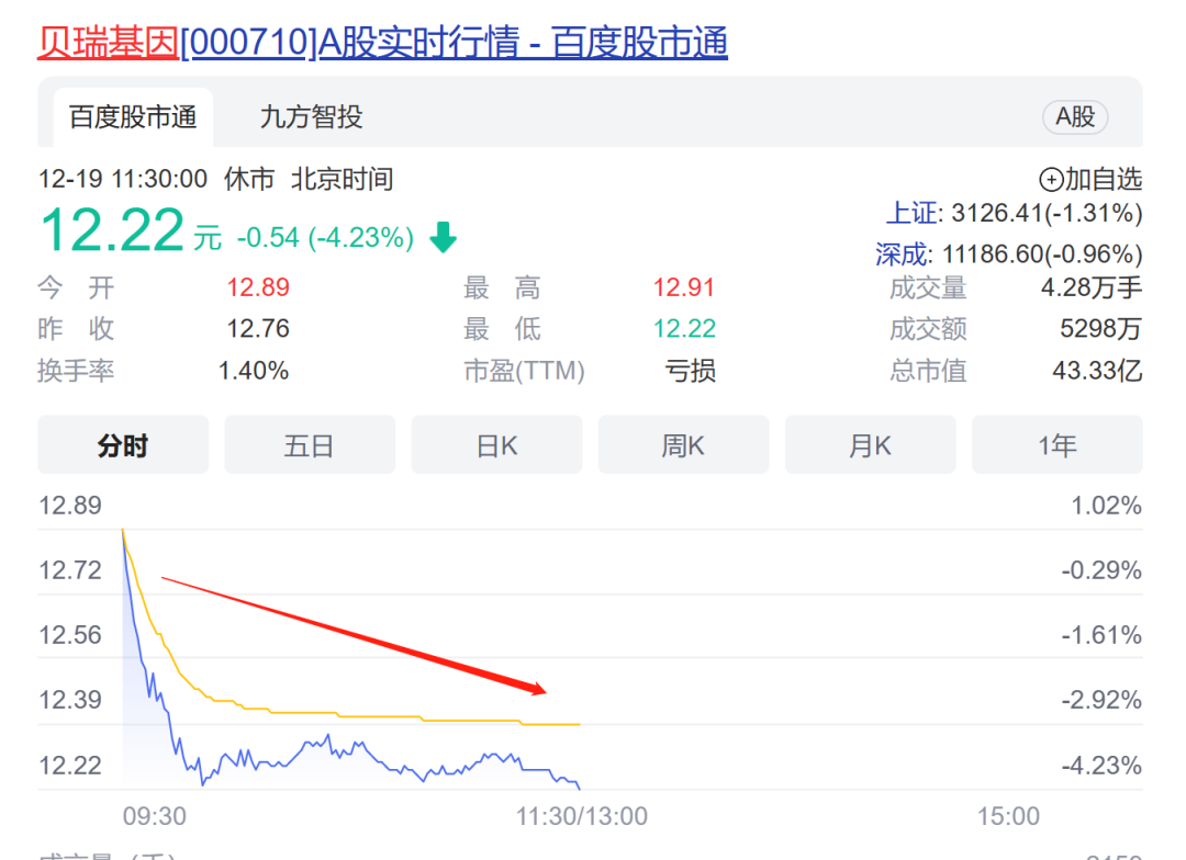 贝瑞基因上周末公告,截至公司最新一期股东名册,持有公司股份3000万股(占公司总股本比例为8.4601%)的股东宏瓴并购,计划在2023年1月10日(含)至2023年7月9日(含)期间以集中竞价交易、大宗交易方式减持公司股份不超过2127.6348万股,占公司总股本比例不超过6%。贝瑞基因今日开盘后直线下跌。