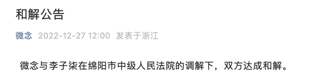 12月27日,杭州微念品牌管理有限公司(简称“微念”)更新社交平台称,“微念与李子柒在绵阳市中级人民法院的调解下,双方达成和解”,双方股权纠纷暂时告一段落。