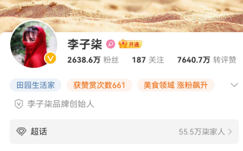 消失一年,李子柒在社交平台的号召力并没有多少下滑。截至目前,其微博粉丝2770万下滑到2638万,B站粉丝由近800万下滑到765万,但是在使其出圈的YouTube平台,李子柒账号粉丝反而上升了100多万,达到1730万的新高度。