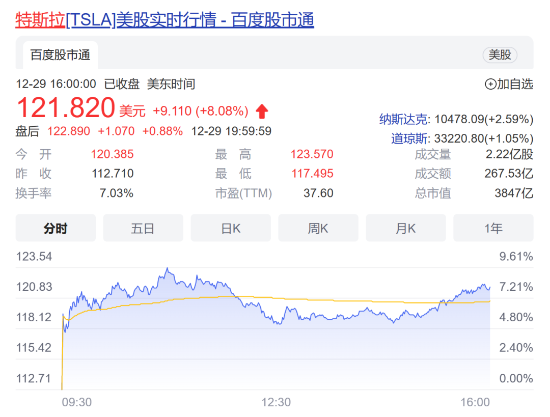 今年以来持续调整的特斯拉迎来大反弹,收盘大涨8.08%,报121.82美元,市值一夜回血约300亿美元(逾2000亿人民币),创五个月以来最大涨幅。受此影响,AH股新能源车概念跟随走强。