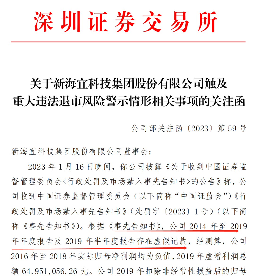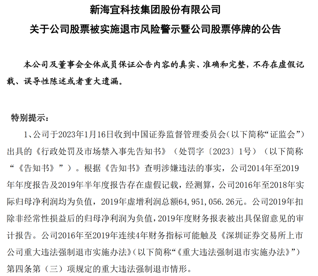 此外,1月16日晚间,深交所迅速向ST新海发出关注函,要求公司在被实施退市风险警示期间,每五个交易日披露一次相关事项进展情况,并就可能被实施重大违法强制退市进行风险提示等。