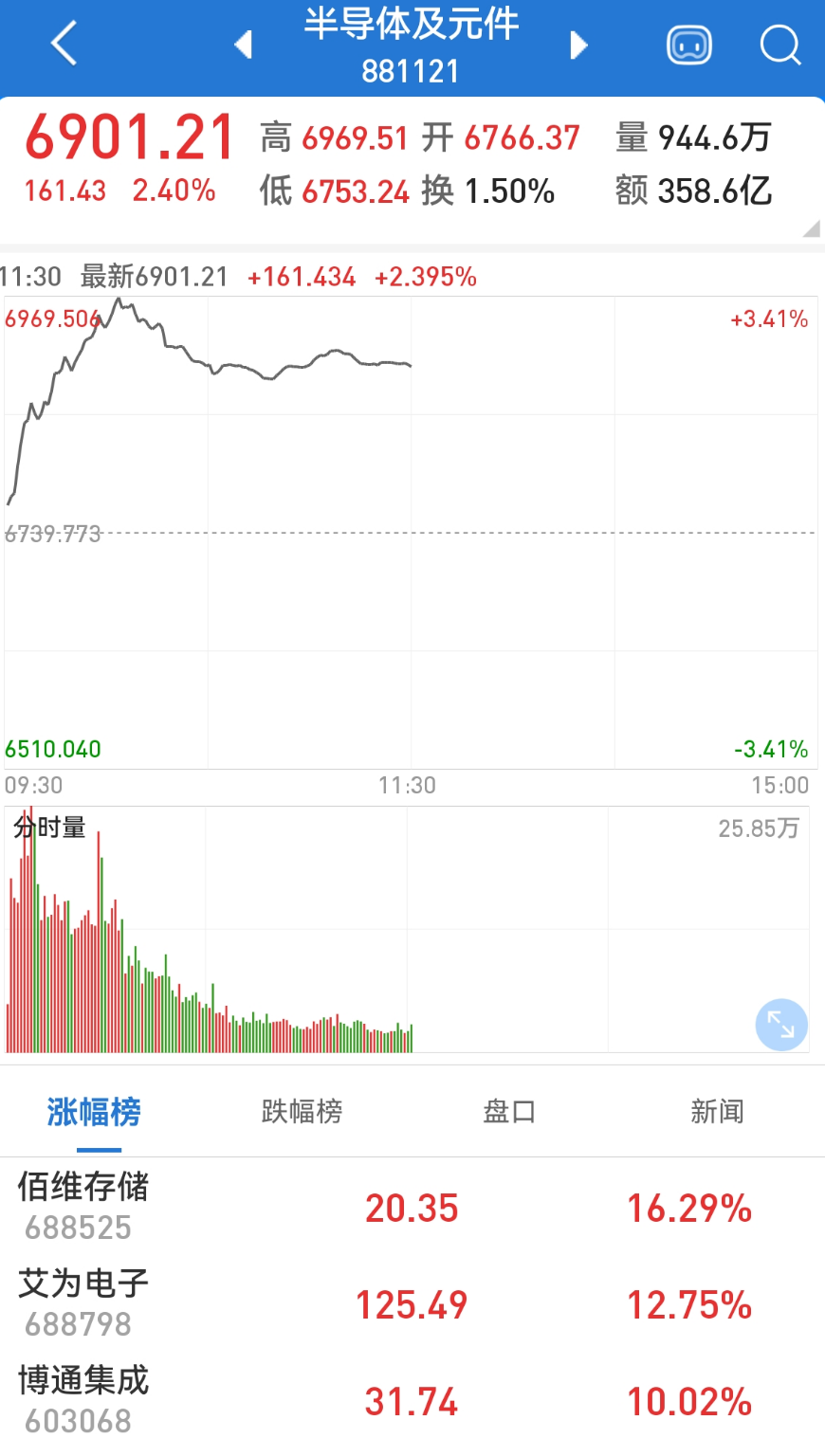 17日半导体延续昨日强势,板块持续走高。早盘佰维存储一度20%涨停,艾为电子涨超12%、唯捷创芯一度涨超11%,博通集成涨停,杰华特、富乐德等跟涨。