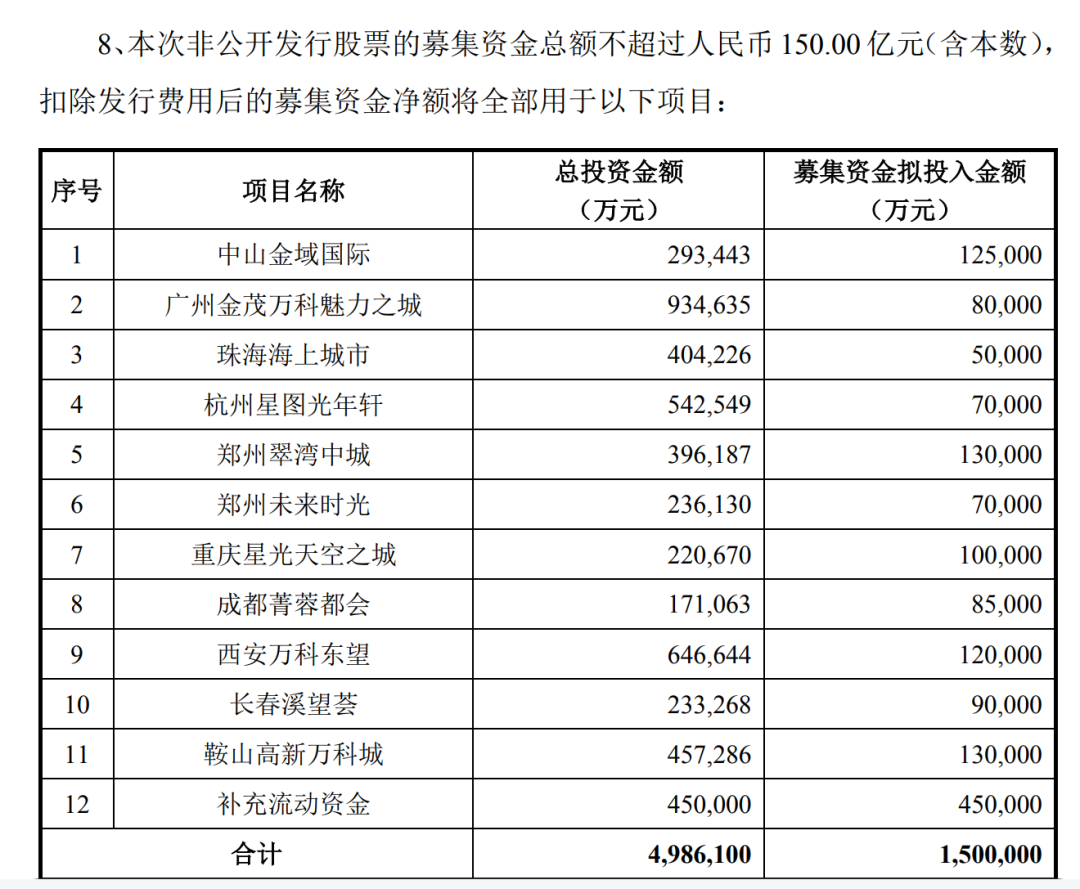 2月12日晚间,万科A(000002)定增方案出炉。公司计划募集资金总额不超过150亿元,用于旗下11个房地产开发项目和补充流动资金。此次万科定增计划如能顺利实施,将成为地产行业去年股权再融资重启以来最大规模的定增。