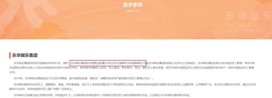 公开资料显示,乐华圆娱是乐华娱乐集团的主要营运附属公司,二者的法定代表人均为杜华。