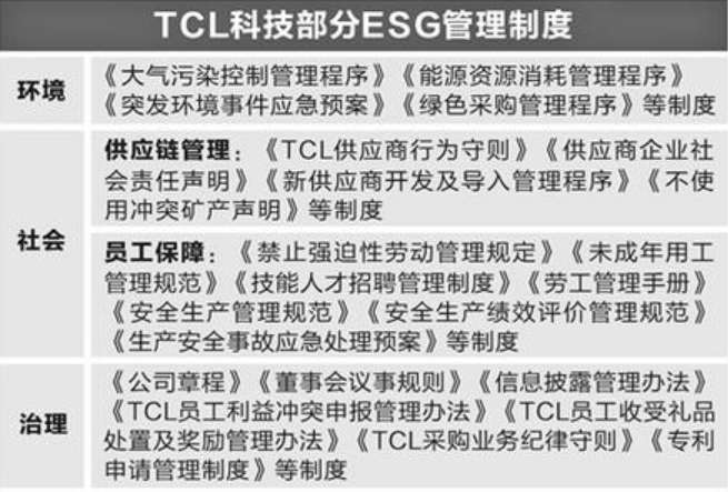 展望未来,TCL科技希望监管机构加快健全ESG政策引导与信息披露指引,加强绿色金融与ESG投资体系建设,在中国发展适宜当地情况的本土化ESG标准,为国内企业提供实用的执行指南。