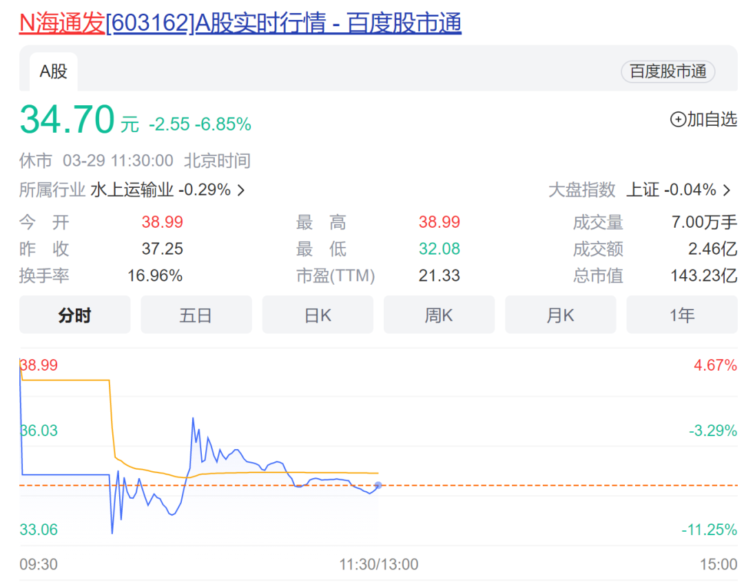 主板新股N海通发今日上市,高开4%后直线跌近6%,罕见的出现新股向下触发临停条件,上交所决定自2023年03月29日09时30分开始暂停N海通发交易,自2023年03月29日10时00分起恢复交易。