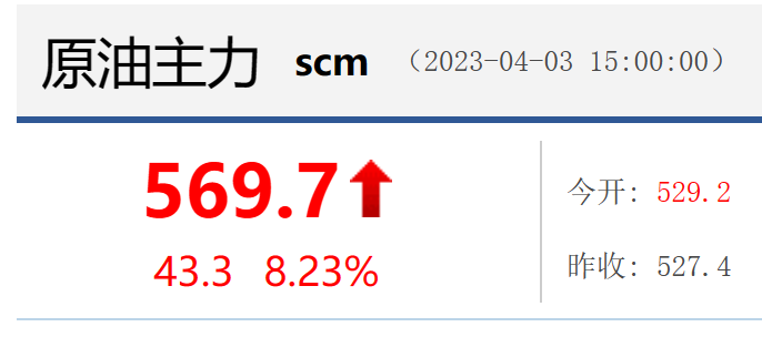 国际油价大涨带动下,4月3日国内期市能化商品整体走强明显。截至下午收盘,主力合约中原油大涨超8%,燃油、低硫燃料油均涨约6%,沥青涨逾4%,苯乙烯、乙二醇、塑料、聚丙烯等也均飘红。