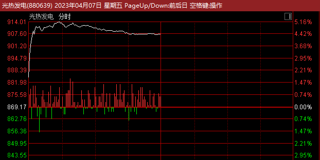 光热发电板块早间大幅高开,随后直线拉升继续走强,盘中一度涨逾5%,开盘1小时成交量接近昨日全天成交。久盛电气20%涨停、首航高科开盘一字涨停,盛德鑫泰、西子洁能、安彩高科等涨停或涨超10%。