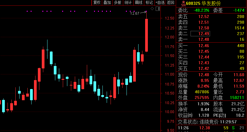 特别值得一提的是,华发股份盘中逼近涨停,股价创出历史新高(复权),这给此前跌跌不休的房地产板块注入了强烈的信心。