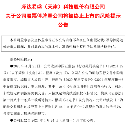 至2022年5月11日,*ST泽达亦收到证监会的《立案告知书》。在先后被立案调查后,两家公司均于当年11月18日收到证监会的行政处罚及市场禁入事先告知书。