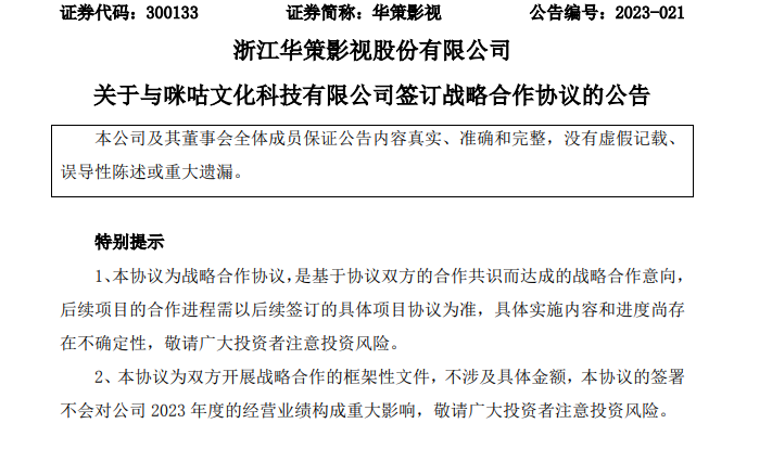 此次与移动咪咕的战略合作,也是华策影视推行“影视+科技”战略的又一次布局。
