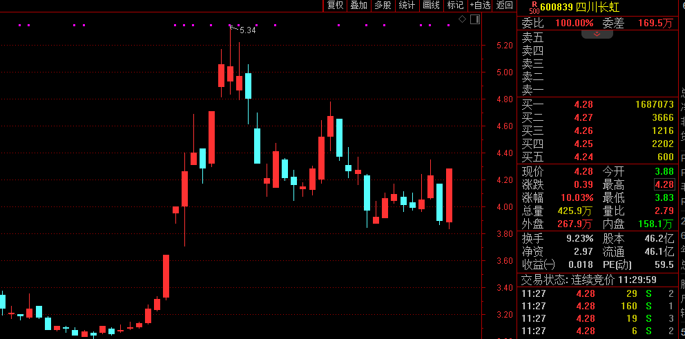 家电板块盘初一度放量直线拉升涨逾2%,半日成交接近昨日全天成交。四川长虹强势涨停,北鼎股份、华帝股份、极米科技等涨幅居前。