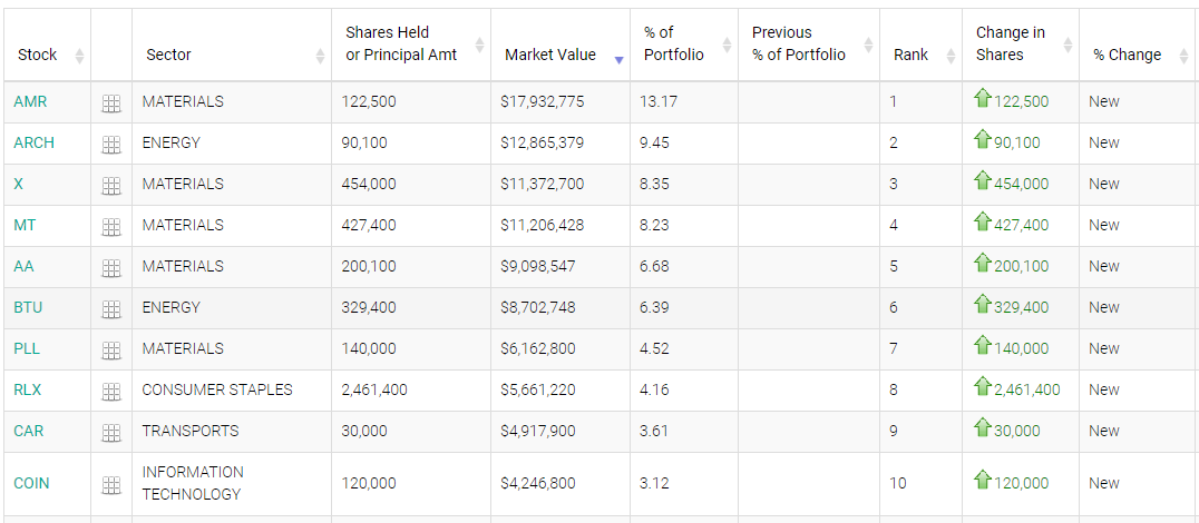 此外,Top Ace还建仓了美国钢铁、安赛乐米塔尔和美国铝业等能源股。